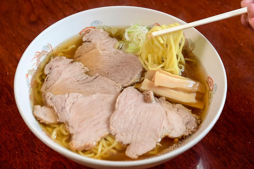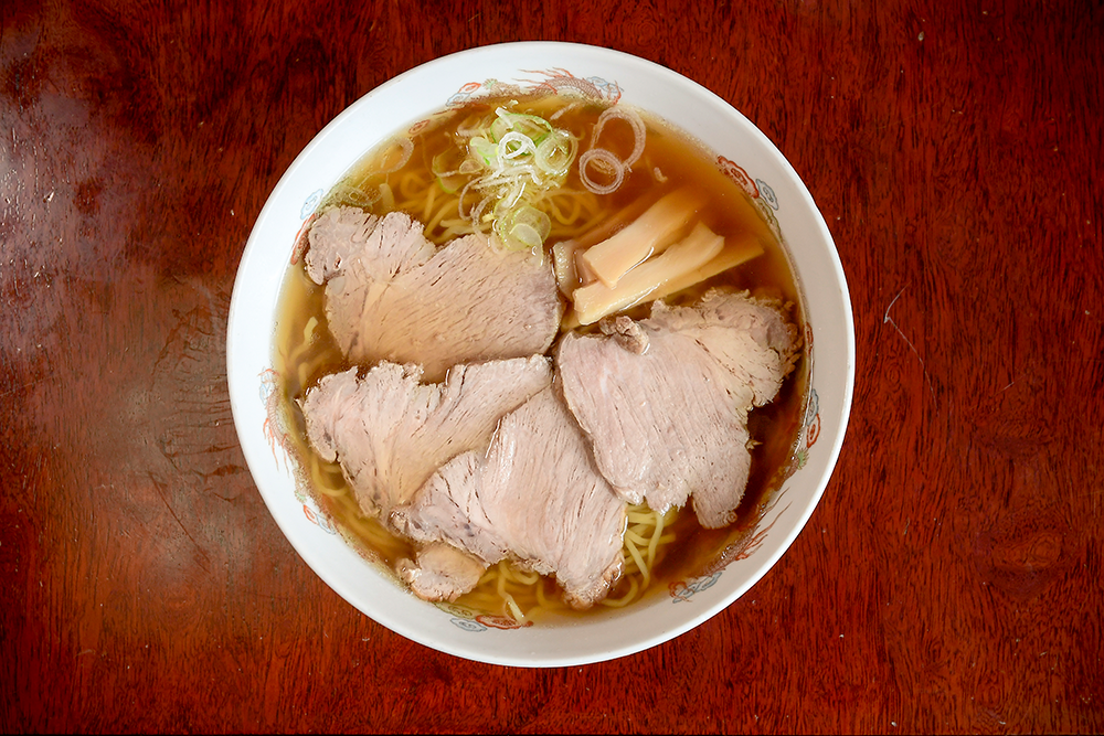 牛骨ベースの昔ながらの蕎麦屋の中華になります。チャーシューは国産の豚肩ロースを使用しております。ぜひご賞味ください。