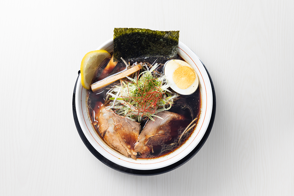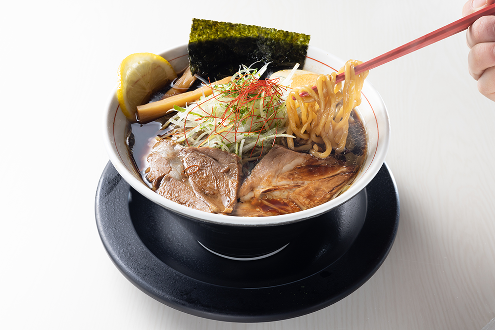看板メニューである漆黒の「ブラック」。醤油と丁寧に向き合い表現する味の深さ、爽やかな喉ごしに魅了されるファンも多数。魂をそそぐ一杯をどうぞ。