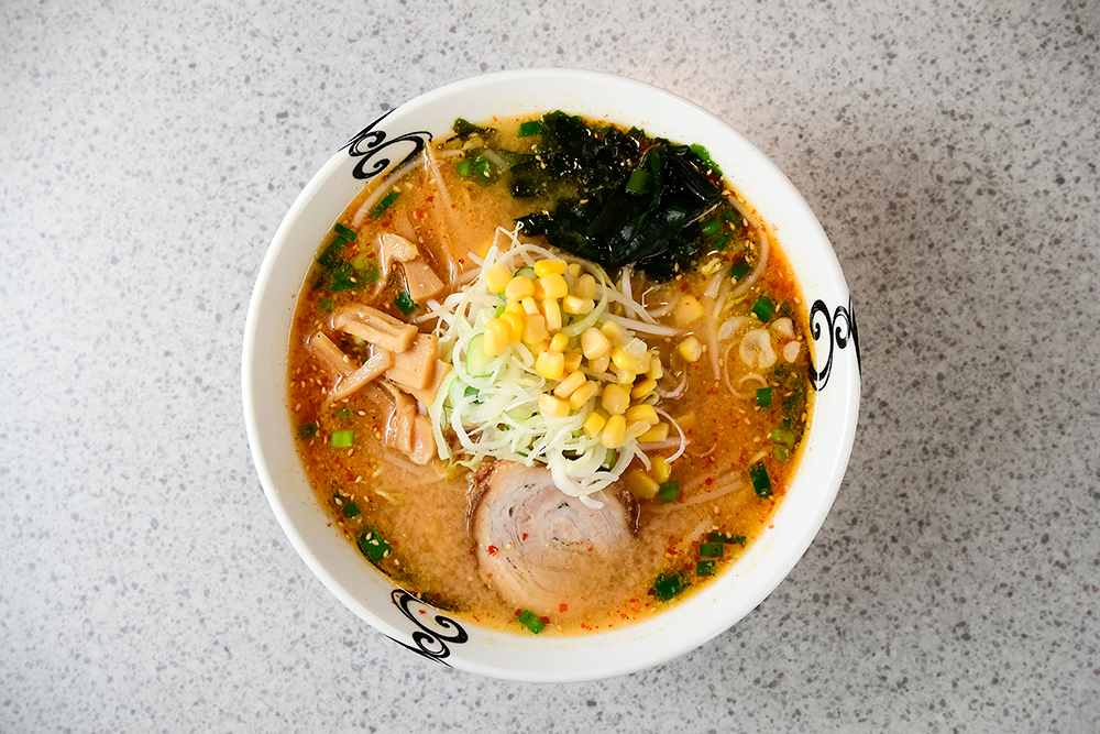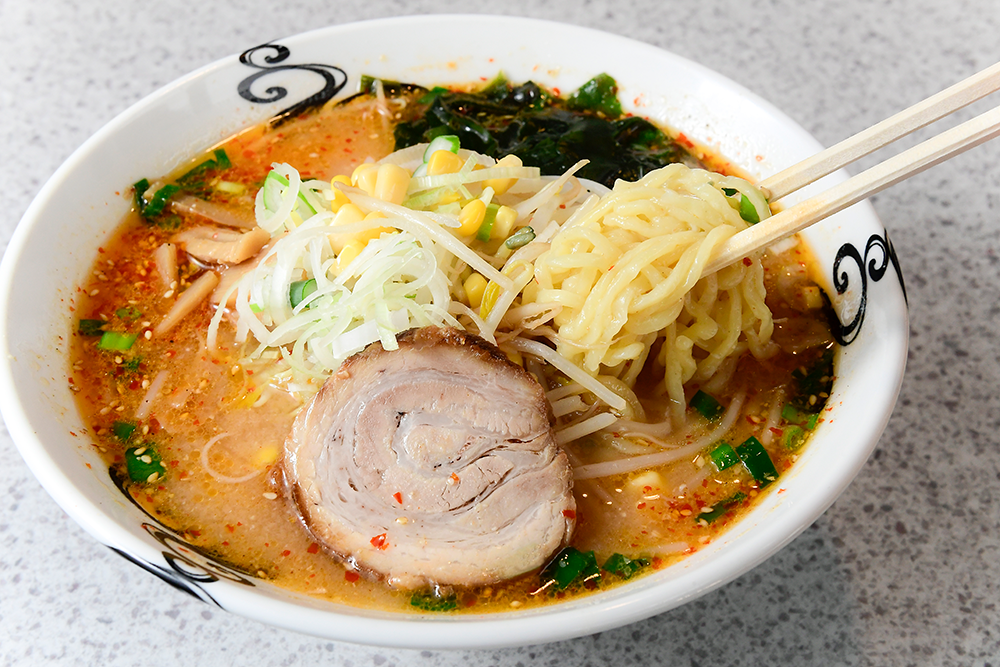 中太縮れ麺にピリ辛のみそスープがしっかり絡む。42年間変わらぬ味に、ファン多し。