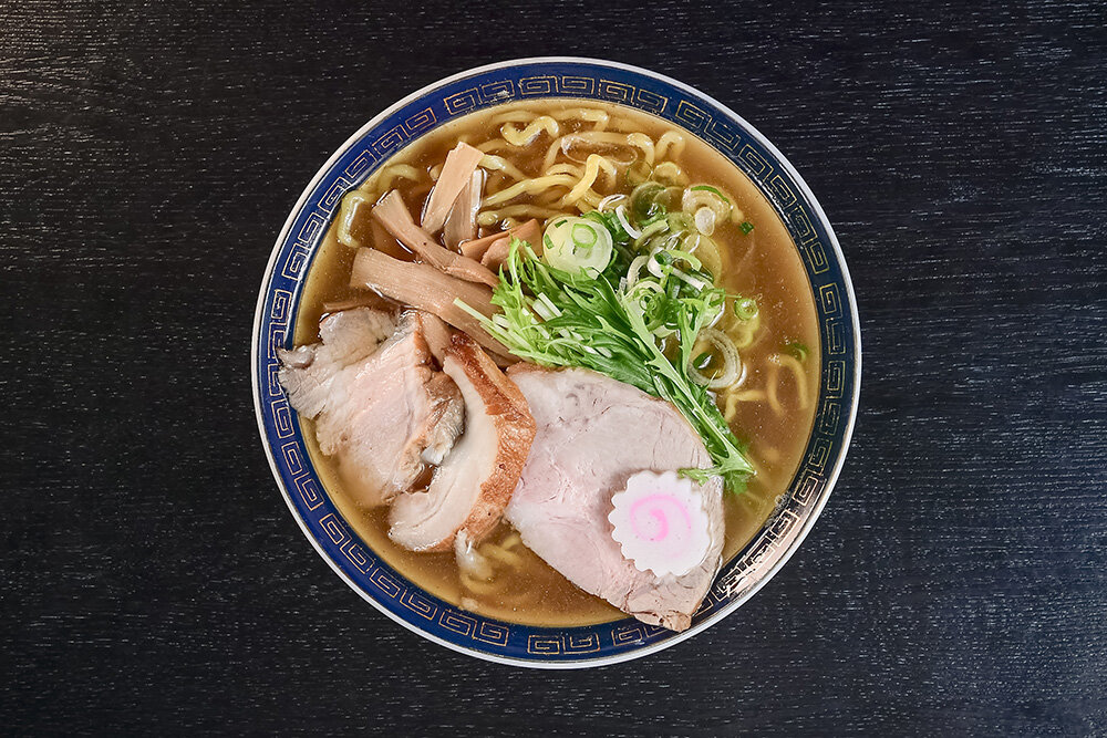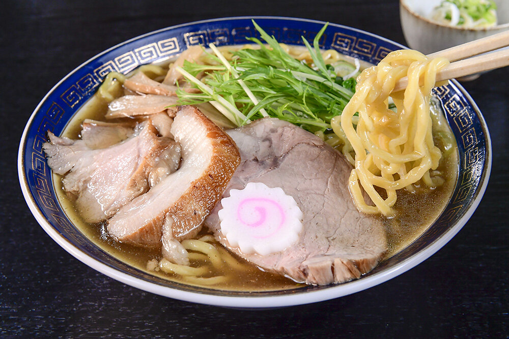 煮干しのダシと豚骨ベースのコクがマッチした中華ぞば。しっかりとした中太麺もスープとの相性抜群!