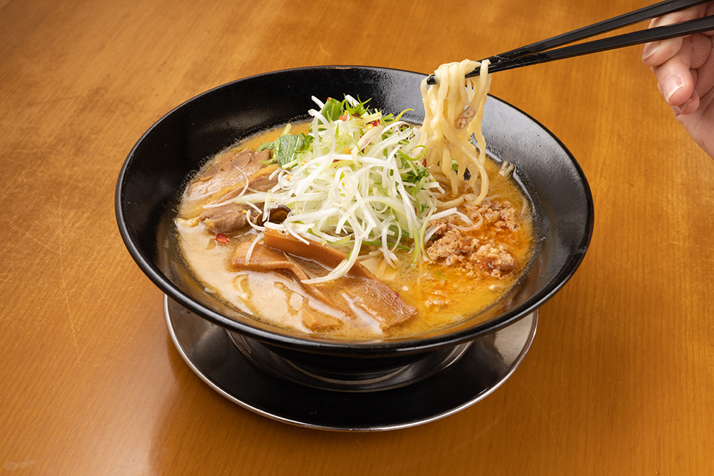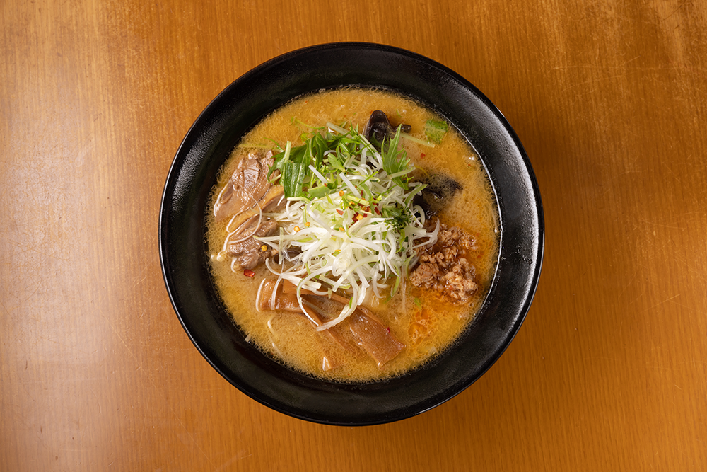 「ラーメンを食べて健康に」という発想から生まれた創作ラーメン。鶏チャーシューをはじめ食感の異なる鶏肉と、ごぼう、シャキシャキの野菜がたっぷり!コクのある味噌味のスープと、もっちりした麺との相性も抜群!