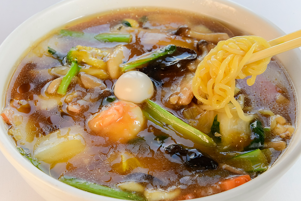 エビ、ホタテを初め、肉・野菜など10品目以上の具材をたっぷり使用した当店の看板ラーメンです! 女性に人気の五目酸辣湯麺もぜひご賞味下さい!