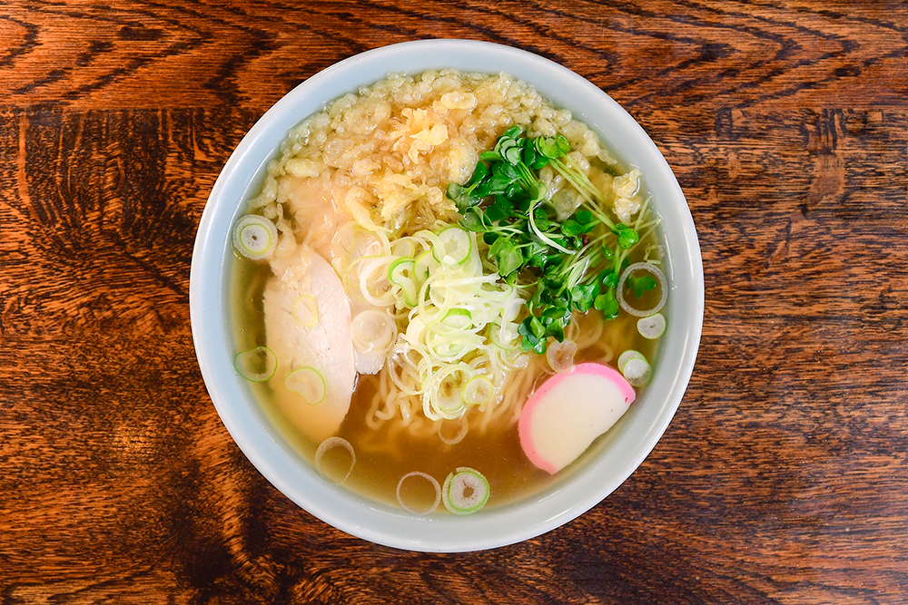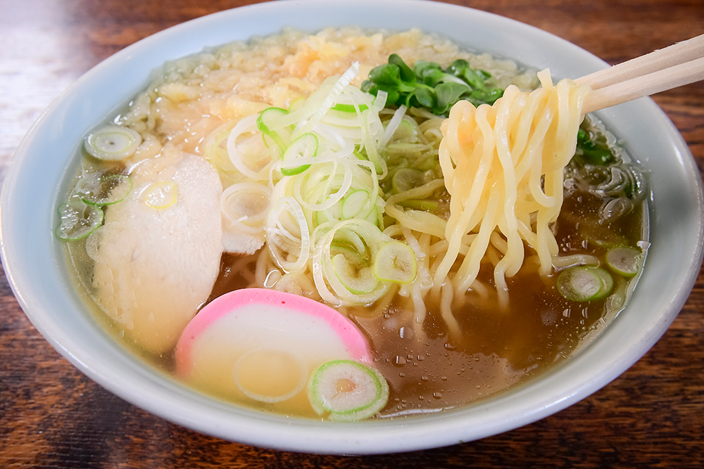 2種類の鶏でとったコクのある出汁に200gの麺で満足できる一杯です。