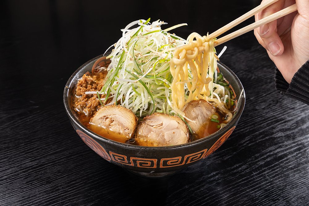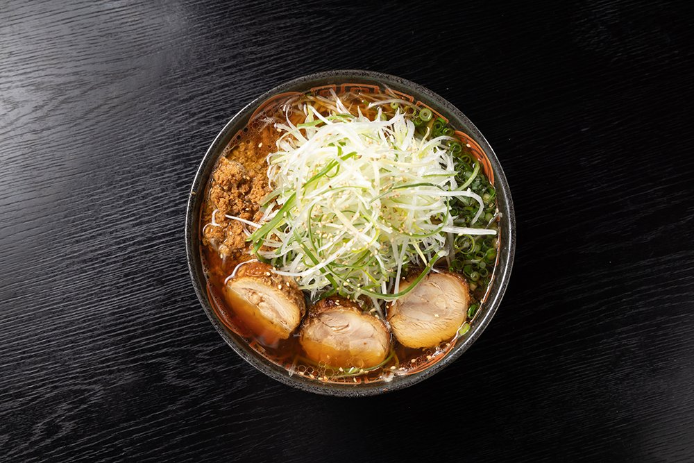 4種類の節類でとったかえしに鶏だしを加えた逸品。麺・スープ・具材にこだわった自慢の一杯。最後にご飯を入れて食べるのが麺辰流。