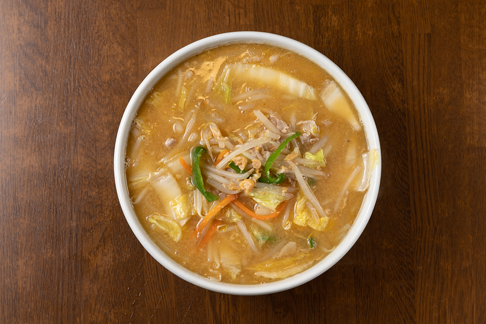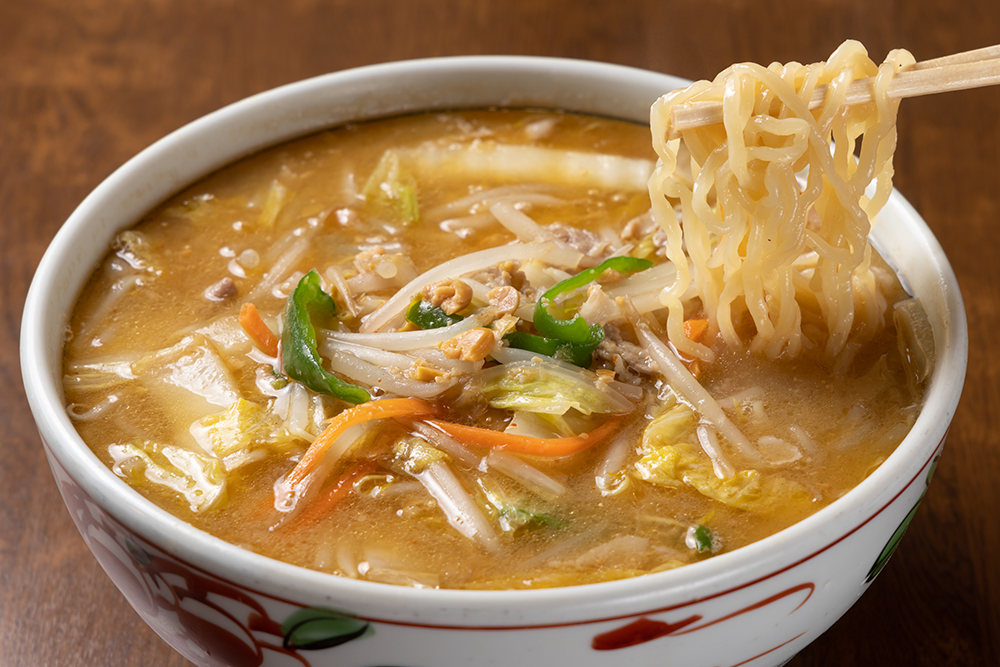 麺は自家製麺。野菜たっぷりで、香ばしく仕上げました。