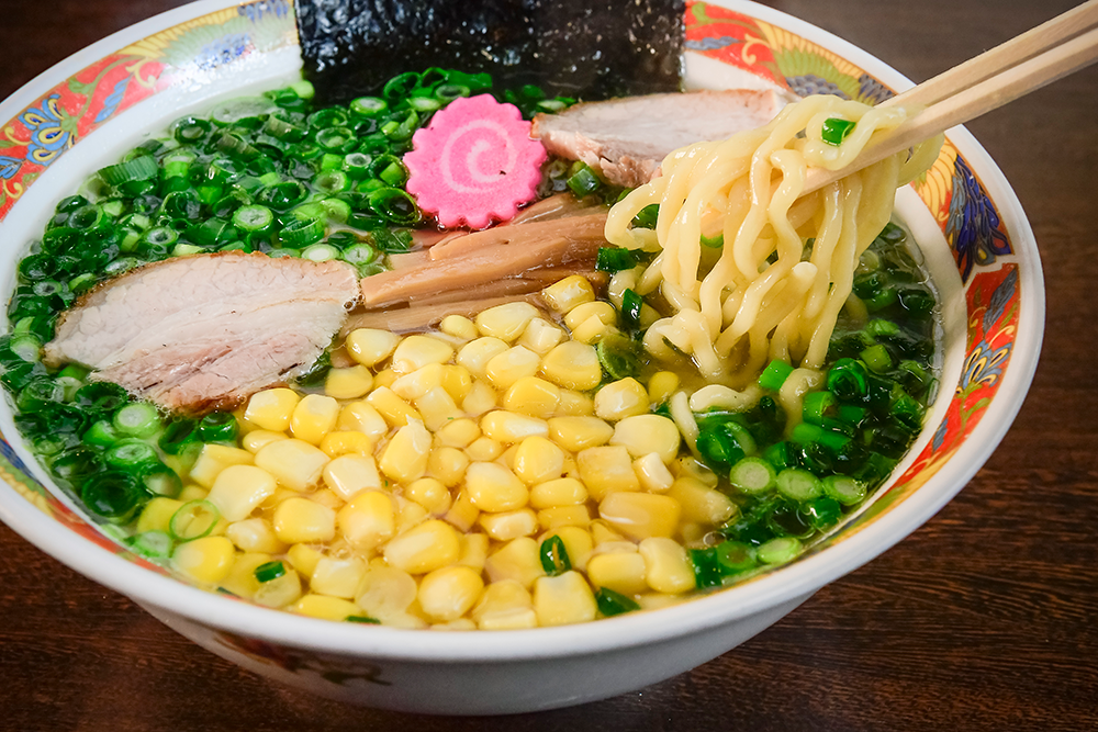天日塩を使用し、まろやかな甘みを出しています。具材には小ねぎ、スイートコーンを活用し味わいを出し、添付のバターで味変を楽しめます。