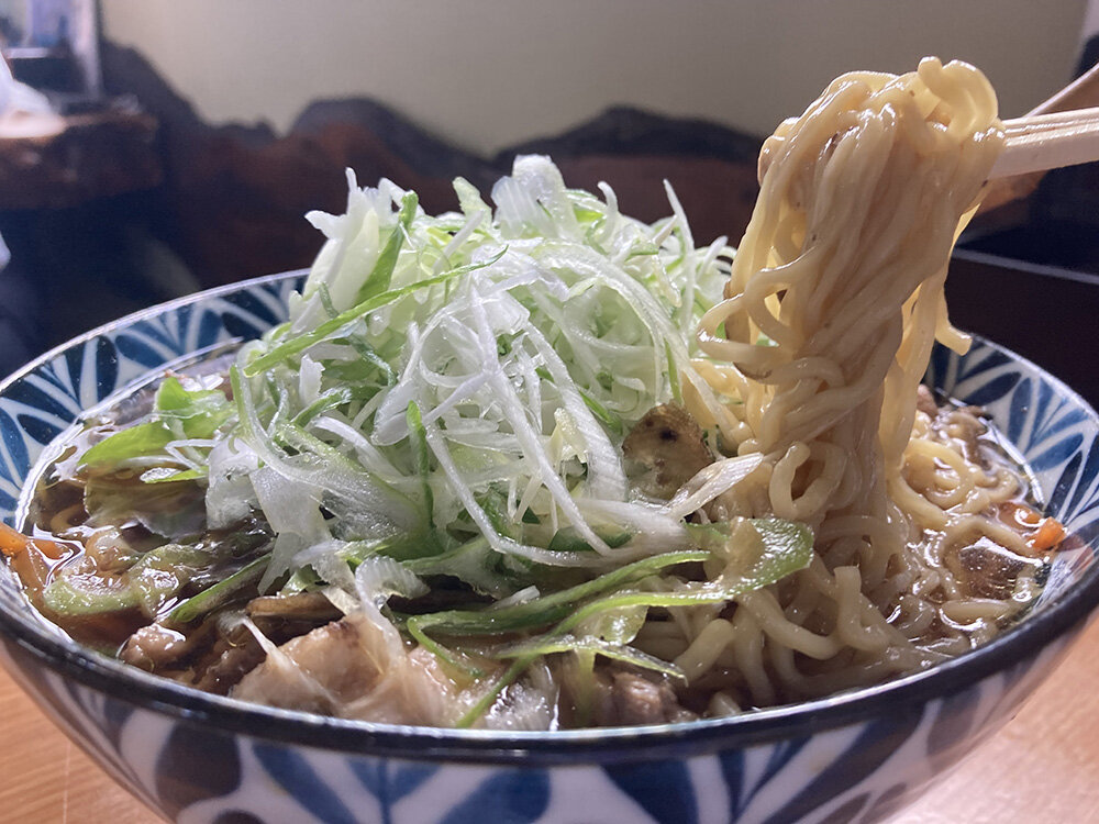 人気の高い鳥中華!ごぼうやにんじんが入り、麺の上にはねぎがたっぷり!食べ応え抜群の一杯です!