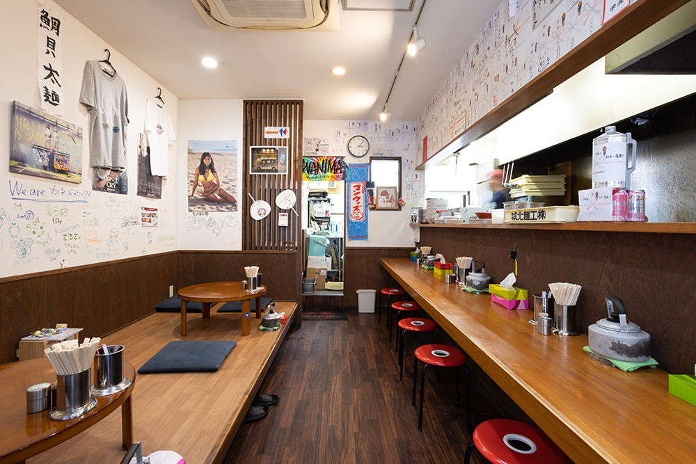 行列の絶えない人気店。スープのダシは一日かけて煮出した鯛のアラとあさりのみを使用。アルデンテのような心地よい食感と、小麦の豊潤な風味の麺と絶妙に絡み、唯一無二の"金子流"G系ラーメンが出来上がります。