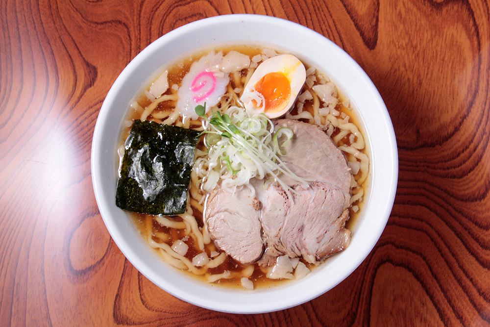 濃厚煮干しだしと動物系のWスープがクセになる。極太麺。しょうゆ味、みそ味あり。