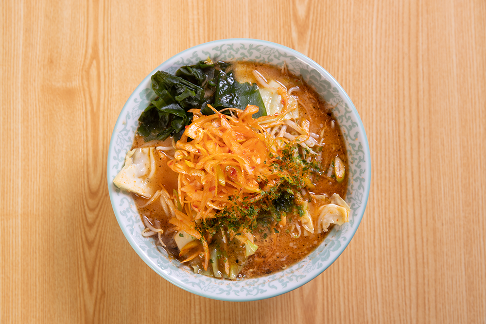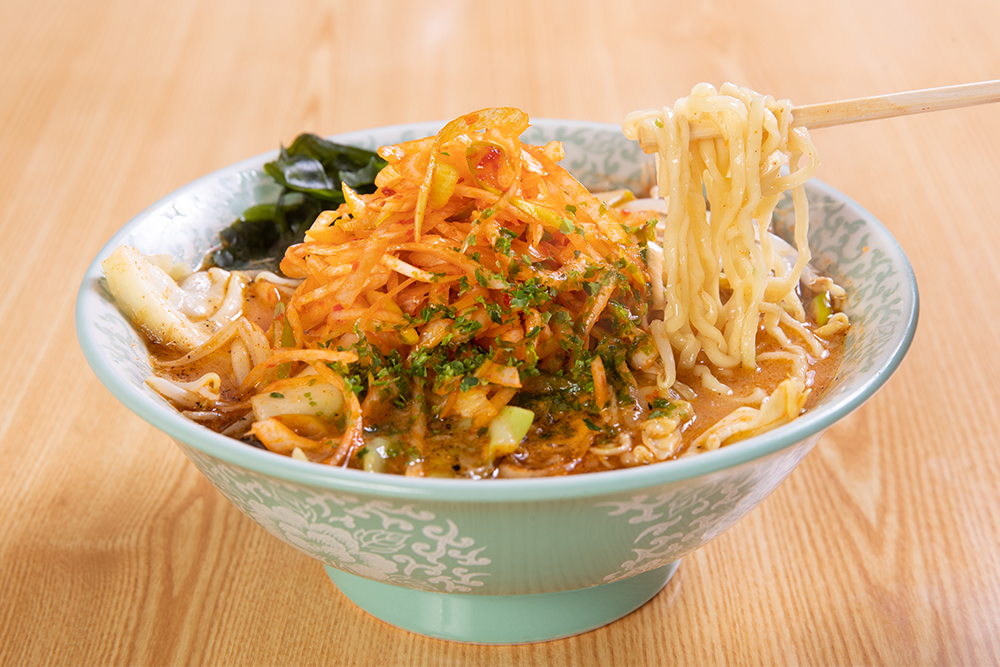 辛ネギみそは、動物系だしとあごだしが効いたスープに辛ネギと野菜たっぷり入った自慢のおすすめの1杯です。