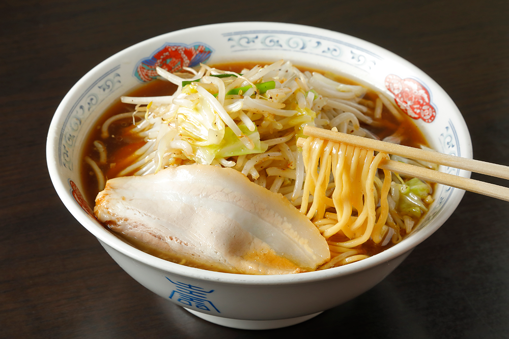 肉そばの名店が作る本気のラーメン。食べ応えのある自家製中太麺と、ダシの効いた濃厚の熱々スープの絡みが絶妙!炒め野菜の香ばしさも食欲をそそります。トッピングのニンニクをとかして食べれば、もう幸せ!