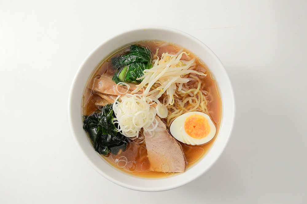 懐かしい昔ながらのあっさりとした鶏ガラスープと7種の具材が乗った県庁食堂名物県庁ラーメンです。