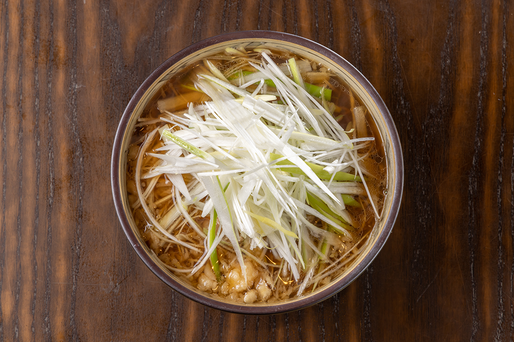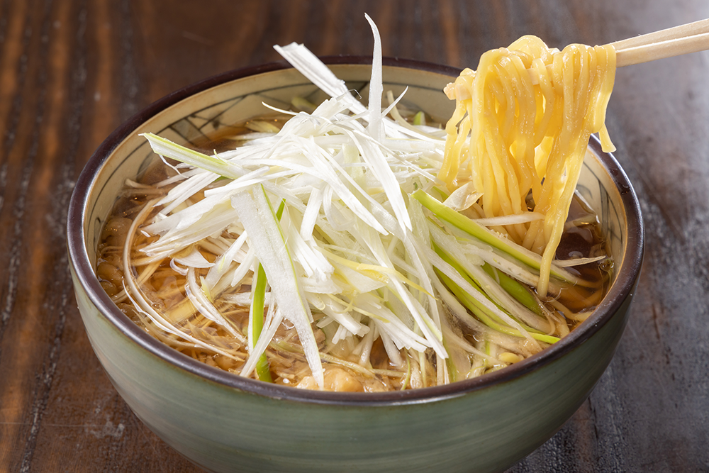 蕎麦屋ならではの鳥中華。和風出汁に揚げ玉のコクとプリプリの鳥肉。シャキシャキのネギをたっぷり乗せて、お子様からご年配の方まで召し上がれる優しい1杯です。