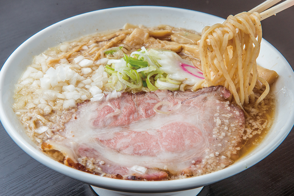 全粒粉とデュラム粉を配合した自家製麺と煮干しダシの旨みが堪能できるラーメン。焼き上げ後に窯で燻したチャーシューをトッピング。麺の太さは細麺・太麺を選べます。