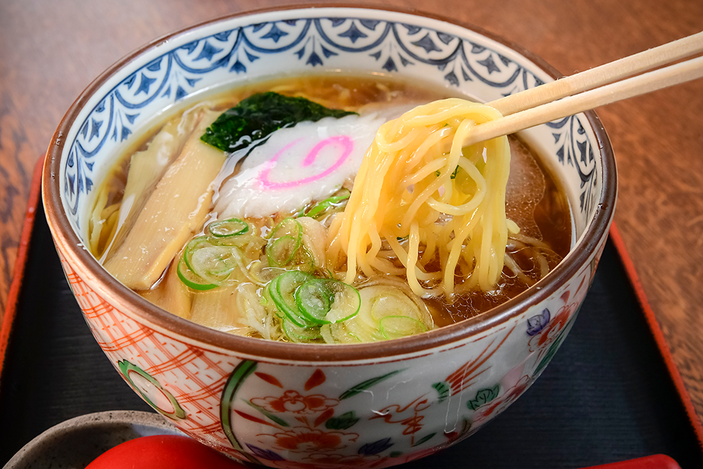 老舗手打ちそば店に創業より続く伝統の味「中華そば」牛骨スープと鰹出汁とのダブルスープ、麺は山形産小麦の「ゆきちから」使用。第1回山形ラーメンフェス優勝店です。