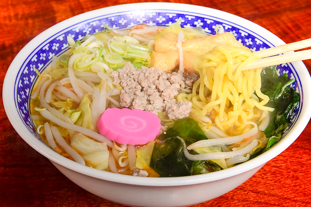 地元で70年以上続く老舗。牛骨・鯖節・自家栽培の野菜等で作ったスープはあっさりしながら奥深い味わい。蔵王ラーメンは、きんちゃく、ワカメ、野菜、ひき肉入り。通が最後にたどり着く一杯!